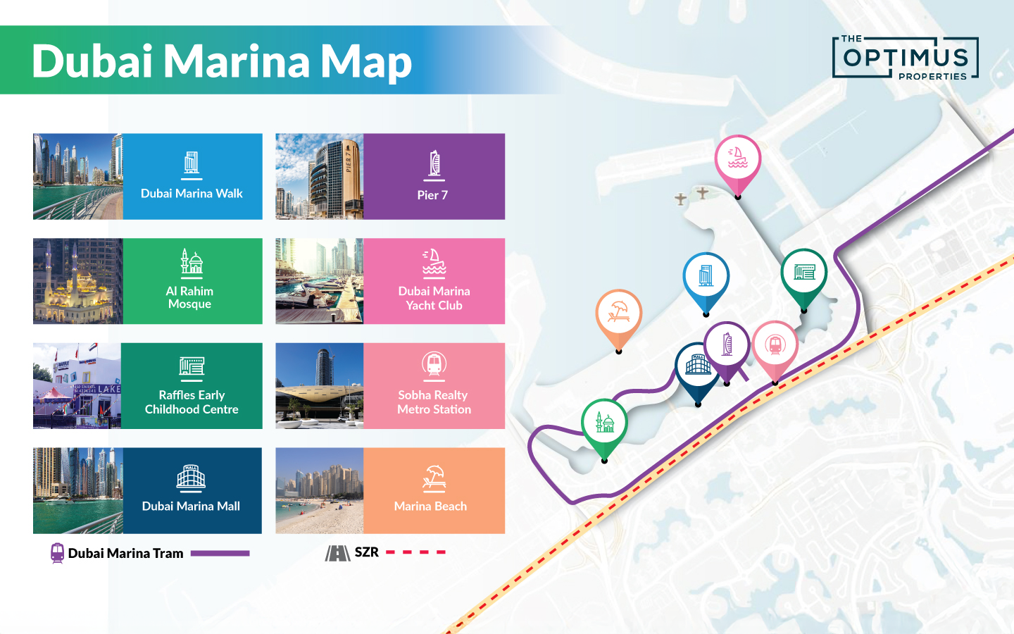 Dubai Marina is one of the most sought-after neighbourhoods in Dubai. This waterfront community boasts skyscrapers, hotels and luxury apartments, a range of restaurants, entertainment facilities, cruise tours and shopping avenues. At a prime location in the city, Dubai Marina is well-connected via major road routes and metro links. The area offers all the conveniences at a hand’s length including grocery stores, medical facilities and retail centres.