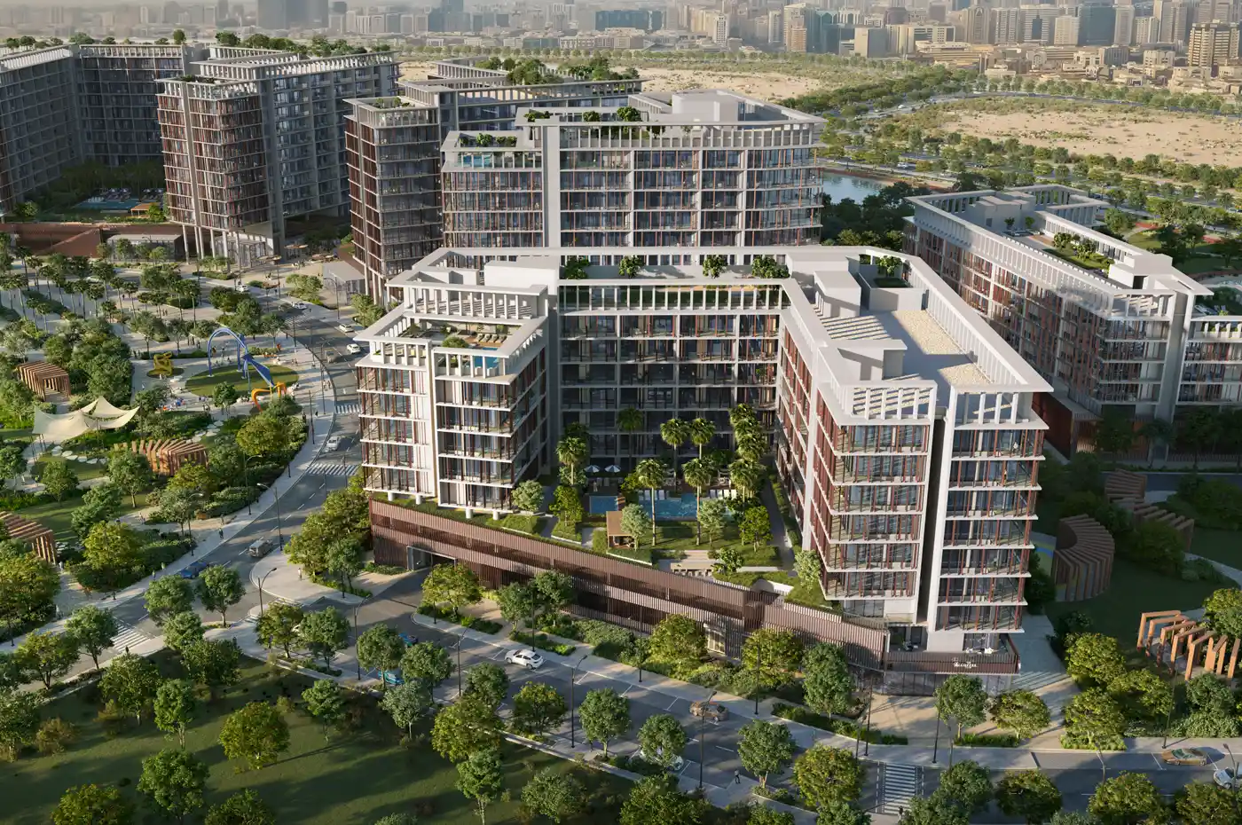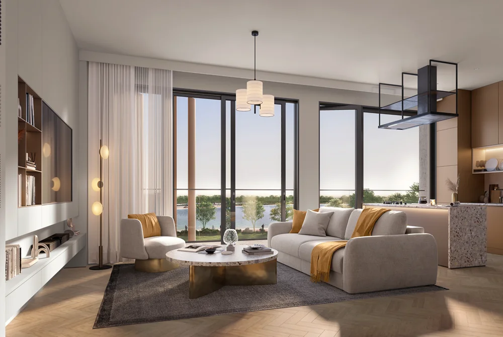 In architecture, it impresses with its artful mix of form and an application. Policy is such that its tower is designed to counter the landscape, set back on their own so terraces and balconies can take views of the gardens and water, and also respect privacy. The materials comprise of glass, accent with stones, and complementary cladding in a warm shade, which gives it a natural but upscale look. Interiors are designed by consideration of high ceilings, open design, smooth kitchenettes as well as spacious windows that brings about open, airy spaces. The smart-home statement and eco-friendly design, in the form of energy glass glazing and landscaping will ensure the inhabitants receive comfort and natural peace.