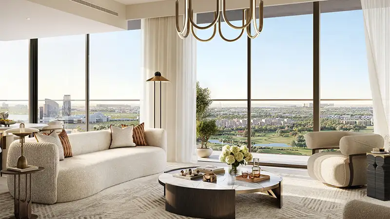 Lyvia by Palace at Dubai Creek Harbour (DCH) is a high-rise and bold residential pinnacle by Emaar Properties paired with hospitality-branded 1 to 3-bedroom apartments and townhouses. Rising beautifully, this contemporary masterpiece emerges with fine and clear lines, offering a diverse series of premium homes with views of a flowing creek and the bustling surroundings. Being one of the highest towers of the region, it’s been imagined by Emaar Hospitality’s globally known brand of Palace Hotels + Resorts. The iconic position of this building is within the lush paradise of Green Gate, which is a peaceful and self-sufficient suburban locality that offers an escape from the city’s vibrancy and easy access to lifestyle and cultural sites.