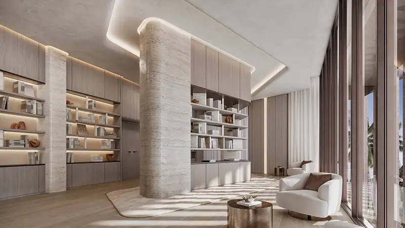 Here, arrival is extraordinary with a drop-off area for each tower, manicured greenery, quick access to the promenade, and the integration of biophilic approaches. A huge lobby for each tower is adorned with smooth finishes, expensive windows, a reception, contemporary design, bespoke lighting, and a sun-lit seating zone, ensuring a sense of serene belonging. There is a total of 513 residences with a diverse range of floor sizes and layouts constructed for families and professionals who value the precious charm of sea-front living.
