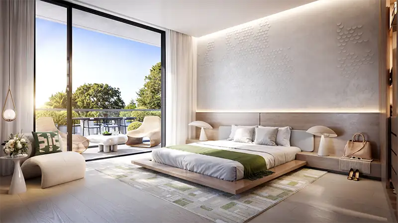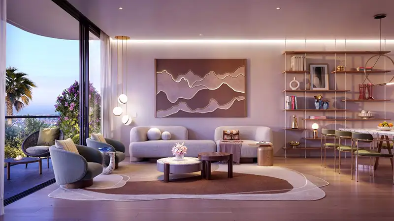 The architectural pearl showcases a minimalist yet eye-catching design, with curved lines, large windows and wide balconies to bring living space outdoors. Integration of greenery on every level, while functional living spaces promote sustainability as well as family-friendly settings in a thoughtful creating. Light-filled interiors, high ceilings and elegant finishes combine here to form a home that easily balances privacy, comfort and style.