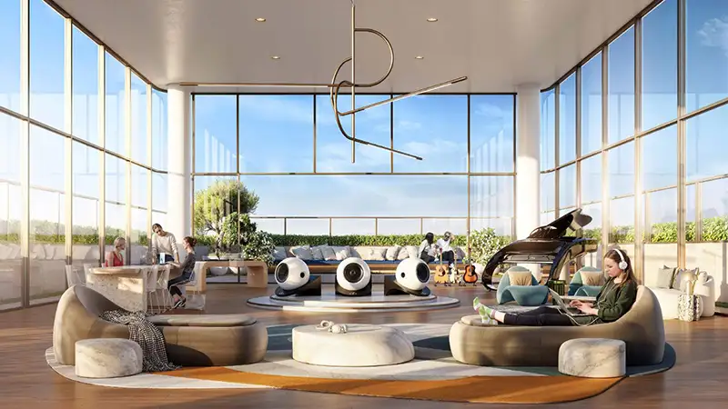 Residents of this development live a curated lifestyle with wellness and creativity at its core. Elevated daily living includes a rooftop infinity pool with panoramic city views, a fully equipped fitness centre, dedicated music rooms and the stylish residence lounge. The ground level has the refined dining option, Serenaded and Unisson cafe that build community atmospheres through relaxed connection in a vibrant space.